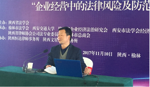 陕西恒达律师事务所主任陈贞学、榆林市中级人民法院民二庭副庭长李永旺、陕西能源集团政策法规室副主任齐渭波、北京炜衡律师事务所西安分所主任、陕西律协公司法专委会主任王小涛分别做了题为“企业经营中的法律风险及防范”、从审判视角看新时代企业用工的法律问题”、“金税三期时代的企业税务风险管理与应对”、“公司治理权力博弈与实证案例分析”的报告。 在四位嘉宾做完专题报告之后,西安市法学会经济法学研究会副会长、西北政法大学行政平博在线,平博在线(中国)副院长姬亚平教授、陕西省法学会企业经济法治研究会副会长、平博在线,平博在线(中国)张冰副教授进行了精彩点评。