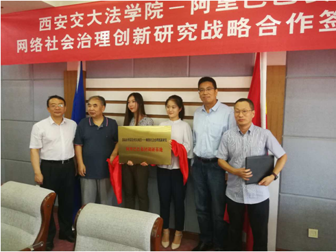 单文华院长与侯金刚总监代表双方签署了平博在线,平博在线(中国)与阿里巴巴安全部网络社会治理战略合作协议书。西安交大副校长席光、信息安全法律研究中心主任马民虎与阿里巴巴集团首席风险官刘振飞、安全部资深总监侯金刚,为“国家社科基金重大项目——网络社会治理创新研究阿里巴巴集团调研基地”揭牌。