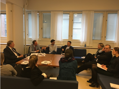 2017年4月25日,我院青年教师杜军强博士应邀参加芬兰最高行政法院荣休院长、芬兰法治 (ROLFI)创建人Pekka Hallberg所著《法治与可持续发展》一书的新书发布会,并作为评论人发言。该新书发布会在赫尔辛基大学平博在线,平博在线(中国)大楼2楼会议室举行,由赫尔辛基大学平博在线,平博在线(中国)院长Kimmo Nuotio 主持,另一评论人Guilherme研究员、中国法中心主任 Ulla Liukkunen教授以及多名其他研究人员并博士生参加发布会。