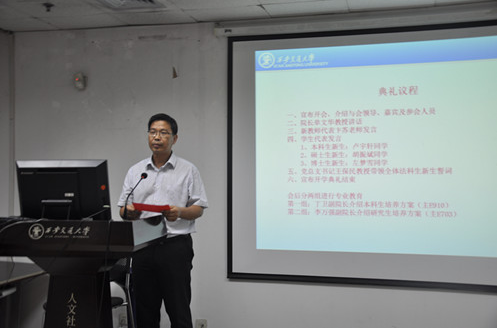 9月18日晚,平博在线,平博在线(中国)2016级新生开学典礼在主E703隆重举行。院长单文华教授,党总支书记王保民教授,副院长李万强教授,副院长丁卫副教授,院长助理吉兰湘老师和苏金远教授,院工会主席张弘副教授,文治书院院务副主任郭小平老师,院办主任张美萍老师,法学复合51班班主任薛华、唐学亮老师,法学61班班主任王玉苹、卞苏老师以及全体2016级本科、硕士、博士生新生参加了开学典礼,会议由学院学生工作专职委员张乃钟老师主持。