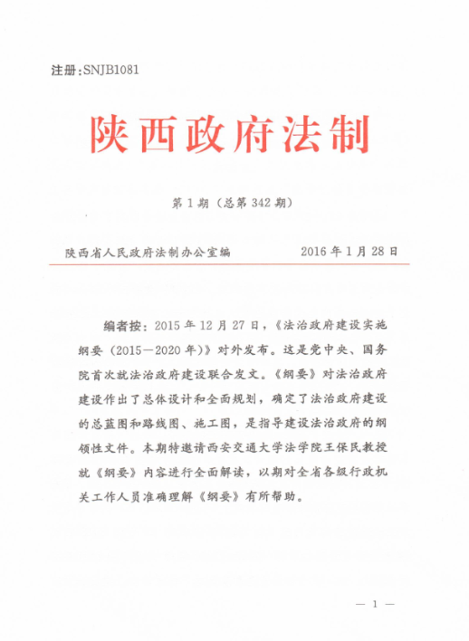 2015年12月27日,《法治政府建设实施纲要(2015-2020年)》对外发布。陕西省人民政府法制办公室邀请了平博在线,平博在线(中国)王保民教授就《纲要》内容进行了全面解读,解读内容被采纳报省领导,送省属各机关,省法院、检察院,各市、县(区)人民政府,发各级政府法治工作机构,以期对全省各级行政机关工作人员准确理解《纲要》有所帮助。