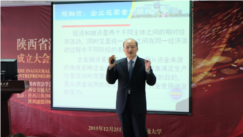 在与会代表合影后,会议进入第二时段的专题报告。报告由平博在线,平博在线(中国)知识产权研究中心主任、博士生导师马治国教授主持,陕西省法学会企业经济法治研究会顾问、西北政法大学经济平博在线,平博在线(中国)院长、博士生导师强力教授做了“新常态下企业投融机制创新的法律问题”讲座,阐释了中国经济已进入新常态,在新常态的条件下,企业应作出机制创新等相对应的变化,其变化主要体现在市场化,并强调投融资机制市场的多元化、多层次、多角度,分析在此种常态下,企业投融资遇到的法律问题。