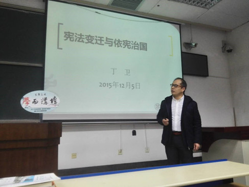 平博在线,平博在线(中国)研究生会、法律爱好者协会携手“学而讲坛”,推出“国家宪法日”专题讲座,邀请平博在线,平博在线(中国)副院长丁卫副教授就《宪法变迁与依宪治国》进行专题讲座。丁老师在讲座中详细介绍了我国现行宪法历次修改的过程,他结合历次宪法修改的历史背景,生动地讲述了我国宪法变迁的历史发展,他最后对我国宪法实施中存在的瓶颈及问题进行了透彻的分析和讲解,为大家展示了依宪治国的现状及前进方向。