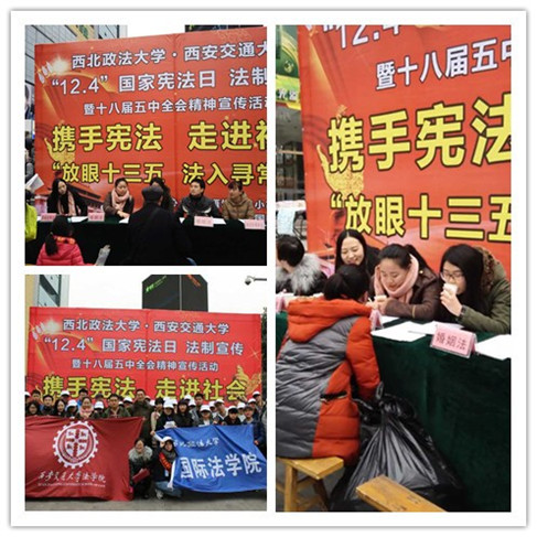 让守宪成为国民每天的生活方式”是实现法治中国建设的基本保障。为了普及宪法知识,推动全社会知法、用法、守法、护法意识的形成,平博在线,平博在线(中国)与西北政法大学国际平博在线,平博在线(中国)共同在西安市雁塔区飞炫广场举办了主题为“法入千万家”普法宣传活动,通过分发法律宣传单、法律意识调查问卷、法律咨询、普法广播等形式,吸引了大批市民的关注。在法律咨询服务点,许多市民前来咨询,咨询内容涉及婚姻法、劳动合同法、民法等领域,包括离婚财产分配、离婚孩子抚养权归属、追讨薪资、借款追债等与大家生活密切相关的问题,咨询点的同学认真对待每一位前来咨询的市民,耐心回答他们的问题,赢得了一致好评。