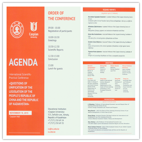 2015年11月18日,我院与哈萨克斯坦里海大学(Caspian University)平博在线,平博在线(中国)在里海大学联合举办国际学术会议,会议主题为“中国与哈萨克斯坦立法的统一化问题”。来自中国驻阿拉木图领事馆、北京罗斯律师事务所阿拉木图分所、美国Dechert律师事务所的嘉宾以及两所平博在线,平博在线(中国)的专家学者与研究生50余人参加了会议,我校科研院副院长贾毅华、国际教育学院常务副院长宋玉霞、人文学院副院长杨琳应邀出席了会议。会议由我院院长单文华教授和里海大学平博在线,平博在线(中国)院长Pavlovna教授联合主持。