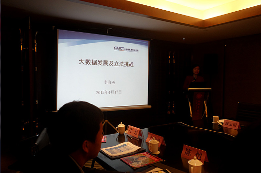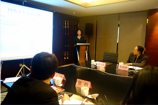 本次研讨会下午阶段由西安交通大学信息安全法律研究中心王玥老师主持。研讨会第三阶段:中国信息通信研究院互联网法律研究中心李海英主任进行了题为“大数据发展及立法挑战”的主题报告,她认为,应当从数据生命周期角度审视数据产生的每个环节,基于数据的资产性和可用性探讨数据使用者的相应责任,以及如何让大数据为人类带来更多的便利和财富,并重点关注如何在发展和安全之间寻找适当的平衡点,以把握数据开放和信息资源控制与安全之间的关系。国家信息中心信息与网络安全部叶红副主任以“中国网络安全立法的困境与突破——关于电子证据的讨论”为题进行了主题报告,她详细论述了从“电子数据”到“电子证据”的过程,提出需要法律和标准的严格规范,以保证电子证据的证明力度。上海社会科学院信息研究所、信息安全研究中心惠志斌主任/副研究员发表了上海社会科学院信息研究所的研究成果——《大数据时代美欧数据安全政策探析》,富有启发性地从软法的角度介绍了欧美相关政策,并关注其对我国的启示,具体包括应当重视人才培养;借鉴美欧相关政策框架和立法实践;重视国际合作;推动“政商为主”向“以民为本”的立法逻辑转变等。西安政治学院朱雁新教授做了题为“战争冲突法”的报告,阐述了网络战争应当秉承区分原则,关注网络战争应当如何对待平民和民用物体的损失问题。微软公司可信赖计算部安全技术政策高级经理陈恺对这一阶段的主题报告进行了精彩的点评。
