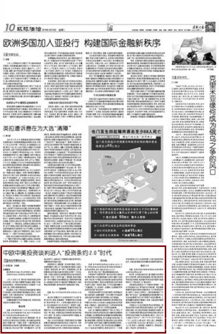 3月24日法制日报环球法治版:中欧中美投资谈判进入“投资条约2.0”时代