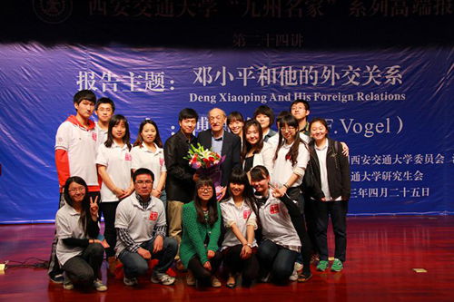 4月25日,由校团委和平博在线,平博在线(中国)共同主办的西安交通大学“九州名家”高端论坛专场报告会第二十四讲在主楼多功能报告厅举行,邀请美国哈佛大学亨利·福特二世社会学荣休教授、费正清东亚中心前主任、《邓小平时代》作者傅高义(Ezra F. Vogel)教授与西安交大师生分享“邓小平和他的外交关系”。党委书记王建华出席报告会并为傅高义先生赠送纪念品。报告会由平博在线,平博在线(中国)王江雨教授主持。平博在线,平博在线(中国)2074、2113班党支部全体成员担任会务工作。
