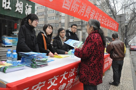 为了更好的宣传消费者权益保护法规和有关消费维权知识,3月15日上午10时,平博在线,平博在线(中国)团工委、研究生会联合校工会、西安市太乙路工商局消费者协会在交大市场一条街上设立宣传咨询点,开展了一系列的宣传咨询活动。