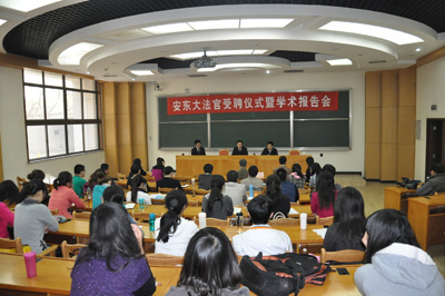 4月13日上午,应我校邀请,陕西省高级人民法院院长安东大法官受聘仪式暨学术报告会在主楼B103隆重举行。受聘仪式和学术报告会由平博在线,平博在线(中国)院长单文华教授主持。平博在线,平博在线(中国)党总支书记彭沪生、副院长王保民等参加了受聘仪式和学术报告会。